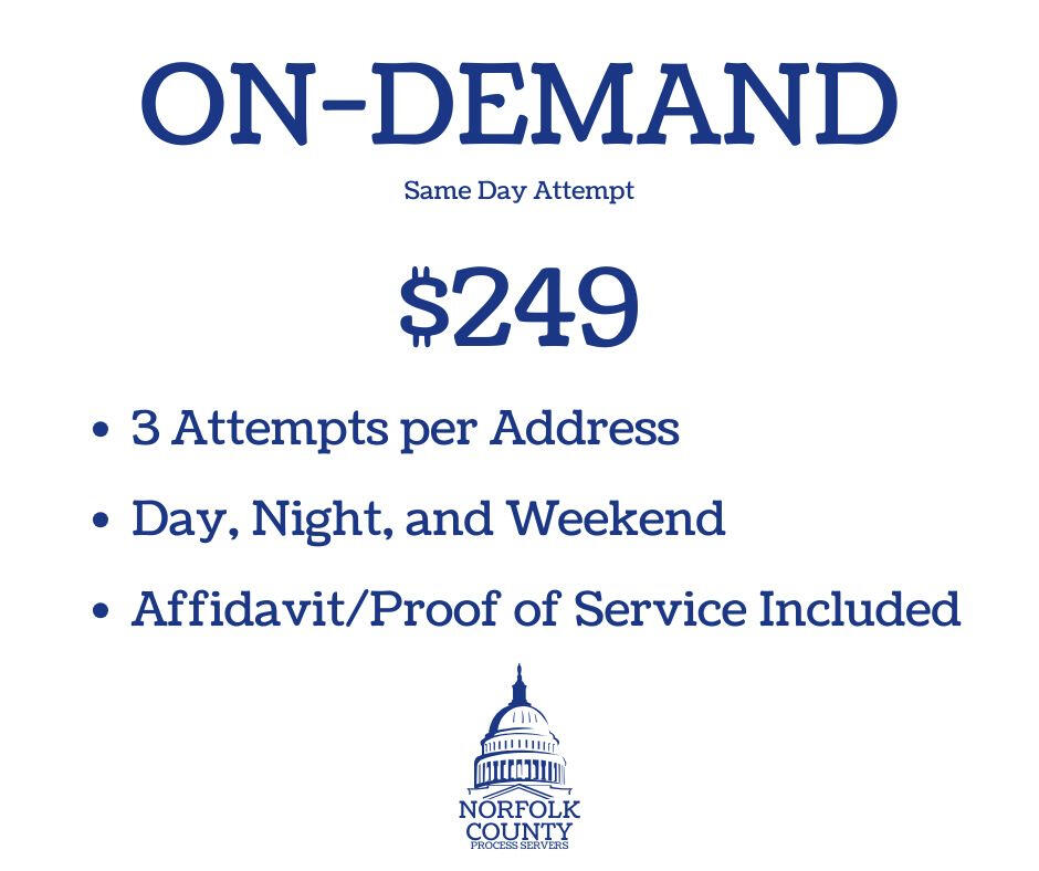 With thousands of successful documents served, our reputation for reliability and professionalism is unmatched in Norfolk County.Detailed Documentation